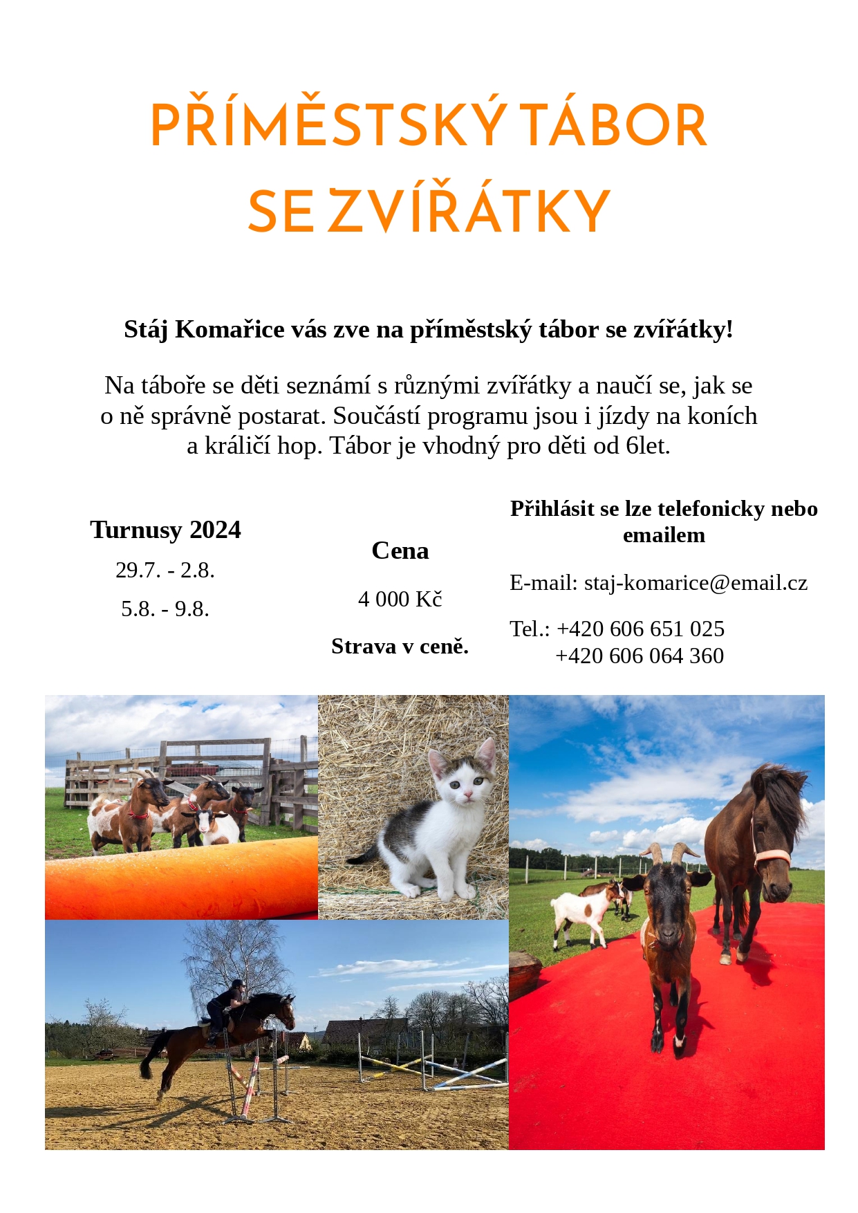 Více najdete v sekci [tábory](https://www.staj-komarice.cz/tabory), nebo nás kontaktujte, pro případné zodpovězení, jakýchkoliv dotazů.