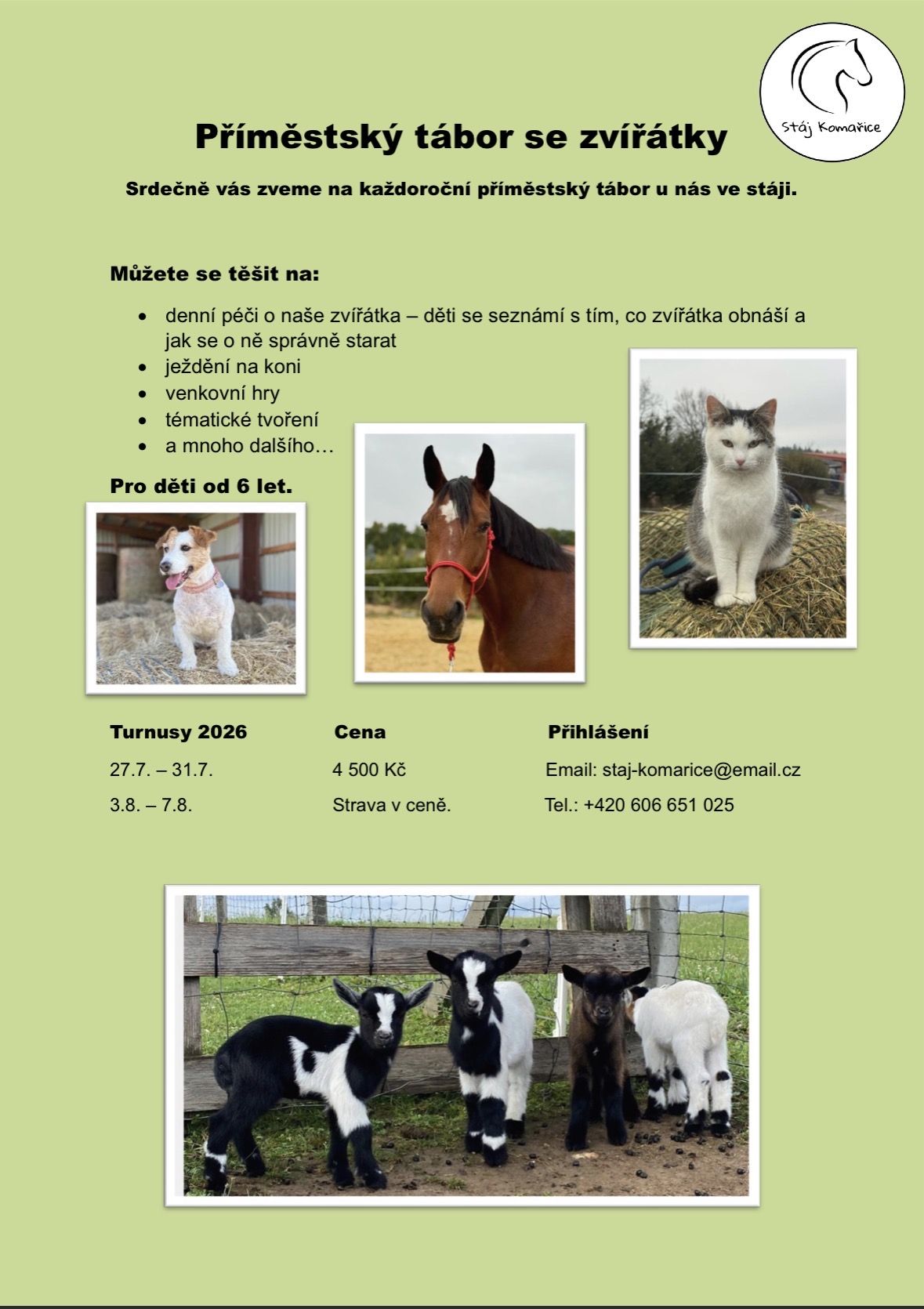 Přihlášky jsou otevřené, přihlašujte se prosím na náš email staj-komarice@email.cz